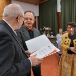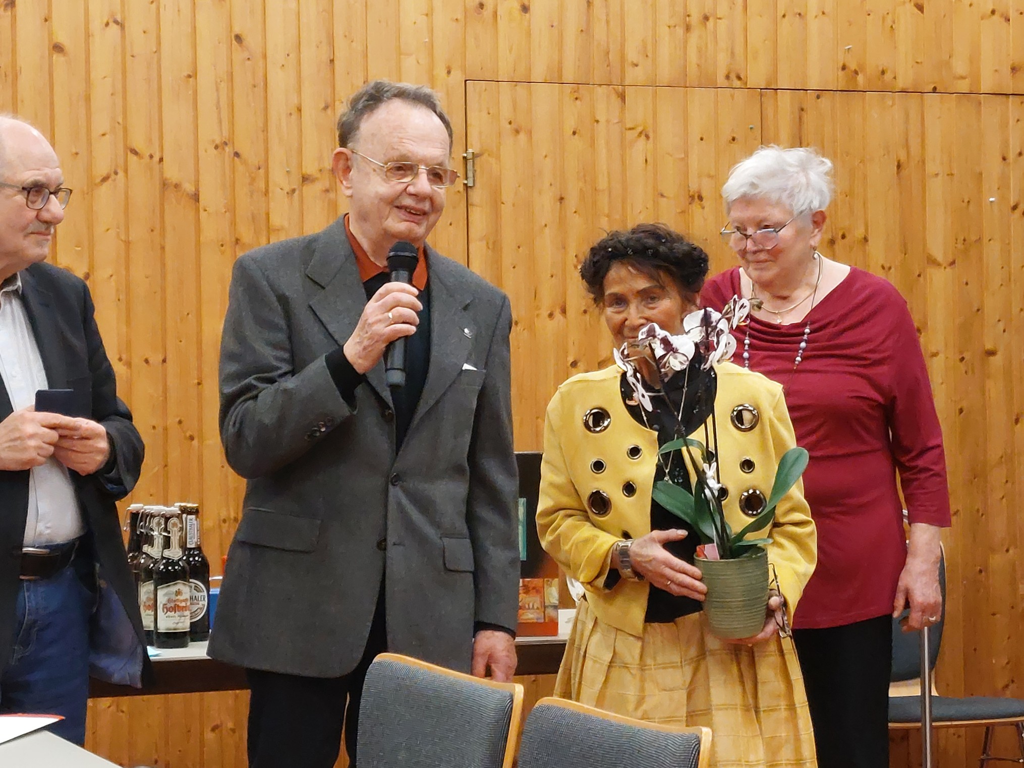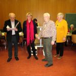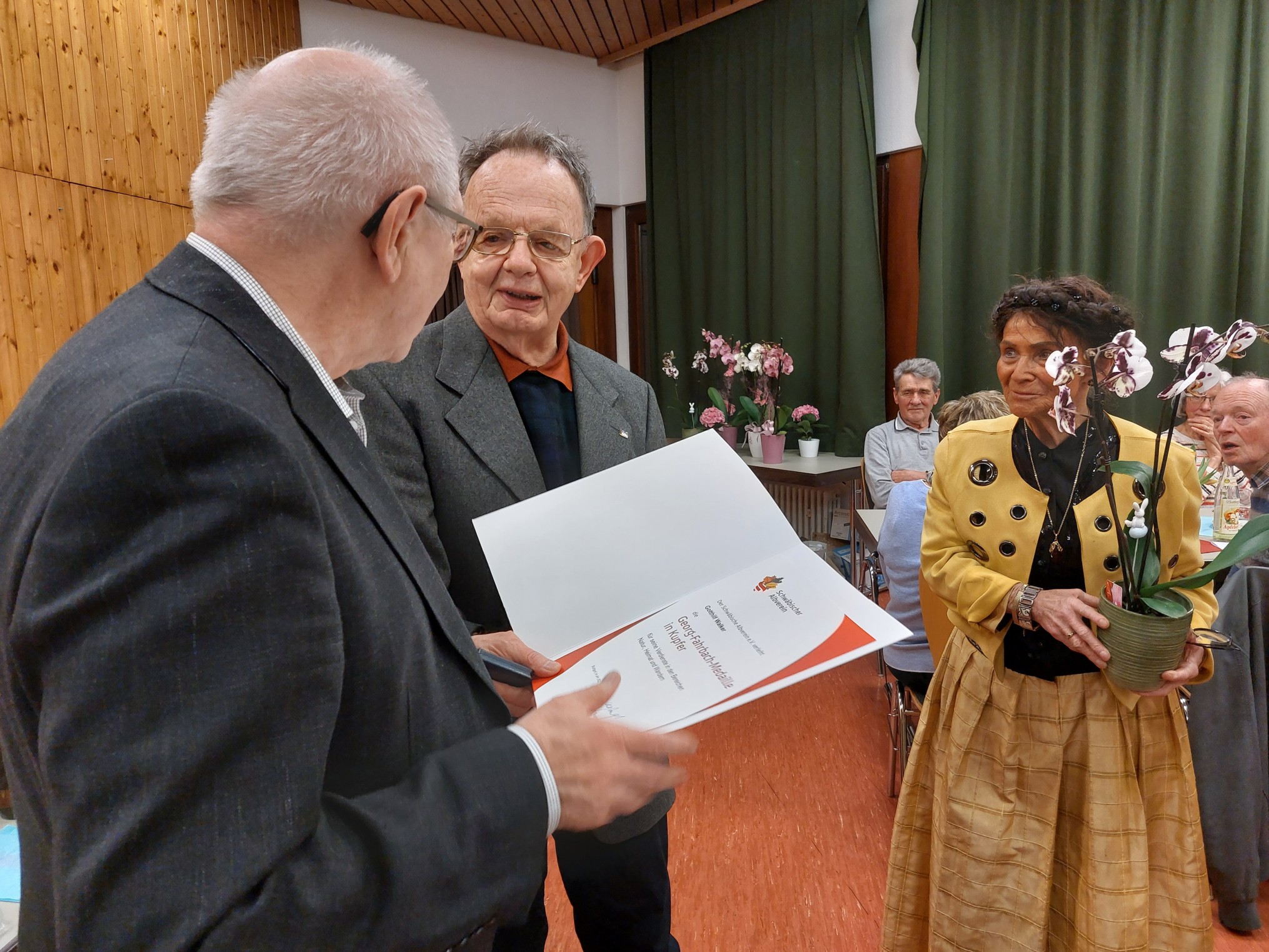 Altbürgermeister Gotthilf Walker bekam die Georg-Fahrbach-Medaille in Kupfer durch den Kreisvorsitzenden Roland Luther verliehen. Vorsitzende Margarethe Kölz würdigte seine 60-jährige Treue und beispielhafte Einsatzbereitschaft für die Ortsgruppe des Albvereins Hohenacker vor allem als Mitbegründer der Ortsgruppe zusammen mit Wilfried Mörk.