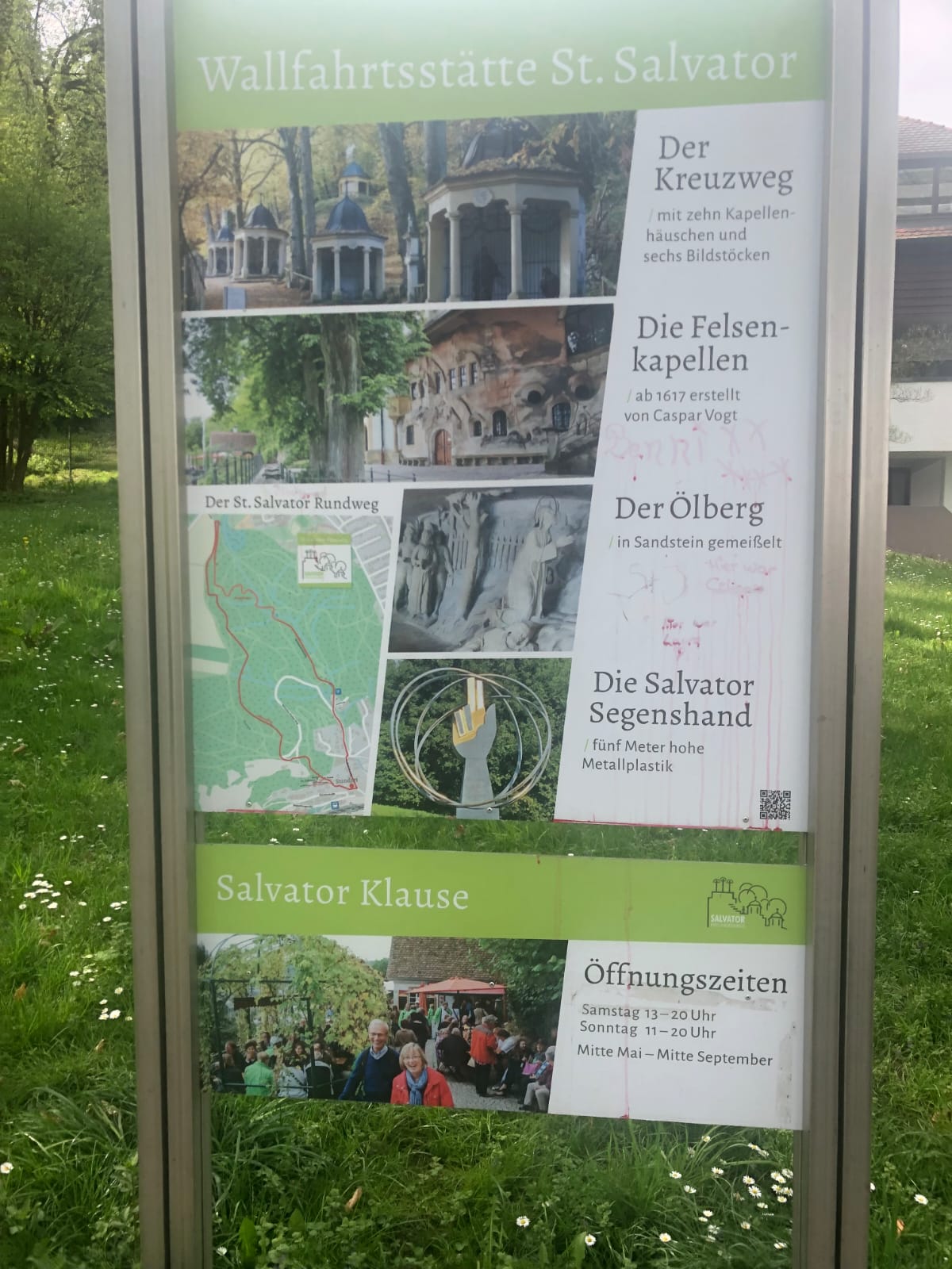 Der St. Salvator ist ein Wallfahrtskomplex über Schwäbisch Gmünd. Er besteht aus zwei Felsenkapellen, die zusammen die Wallfahrtskirche St. Salvator bilden, sowie einem Kreuzweg mit mehreren Kapellen. Der Kreuzweg ist in der Form, wie er in Schwäbisch Gmünd vorliegt, einzigartig. Hier wurden wir um 14:00 Uhr von einem Führer erwartet, der uns zu jeder Station eine Erklärung abgab. Ein sehr interessanter und informativer Ausflug.