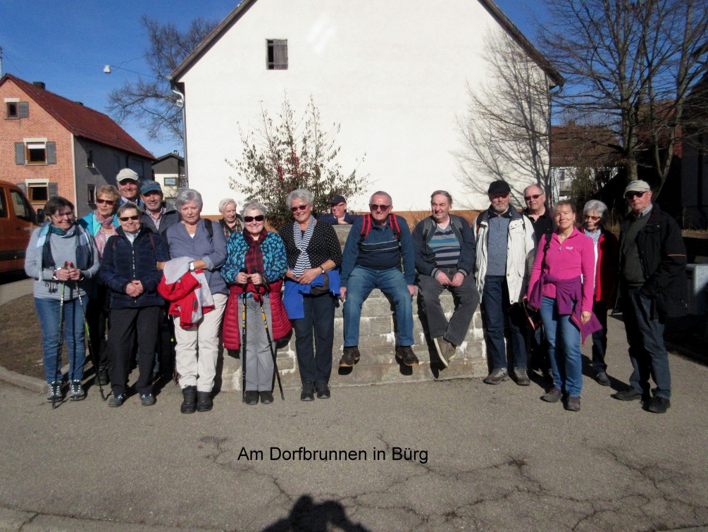 Bei traumhaftem Frühlingswetter – und dies Mitte Februar – erlebte die 20-köpfige Wandergruppe eine sehr schöne Wanderung von Birkmannsweiler nach Bürg und zurück. Der ca. 8 km lange Wanderrundweg ging durch Wald und Wiesen mit herrlichen Aussichtspunkten. In Bürg hatte unser Wanderführer Jürgen im Bürger Besen für die Mittagseinkehr Plätze reservieren lassen. Dies war sehr wichtig, denn bei einem solchen schönen Wanderwetter hatten noch viele Andere den gleichen Gedanken. Kurzum ein Wandertag, wie er schöner nicht sein kann.