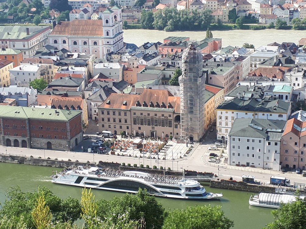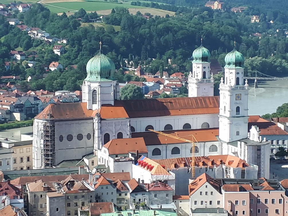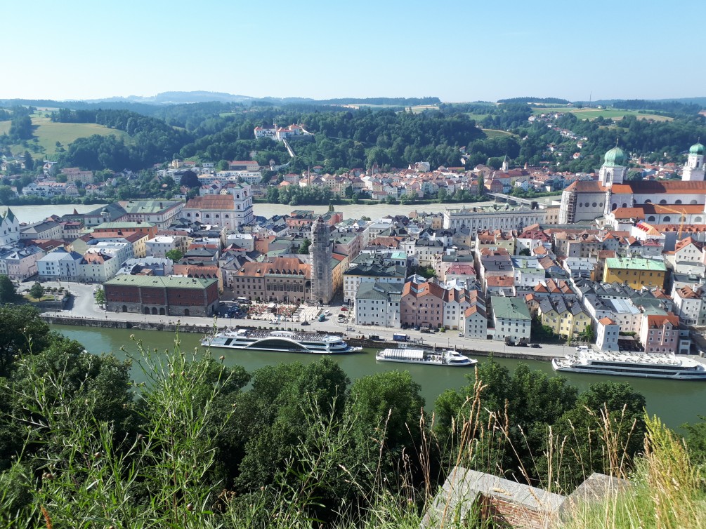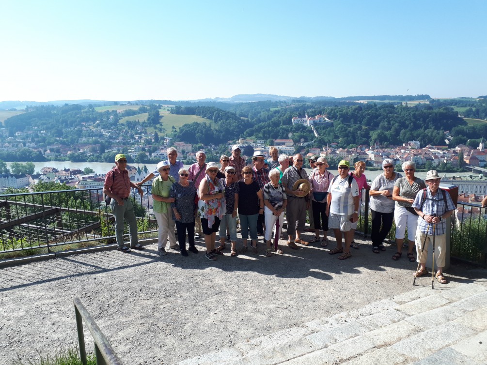 An diesem Tag stand Passau auf dem Programm. Wetterbericht: Sonne und über 30 Grad. Wir fuhren zuerst die Burg „Veste Oberhaus“ an. Von der Residenz des ehemaligen fürstlichen Bischofs konnten wir Passau von oben bewundern. Um die Mittagszeit,bei nun schon sehr warmen Temperaturen, durften wir an einem halbstündigen Domkonzert im St. Stephans Dom die Töne einer der größten Orgel der Welt aufnehmen. Der Kircheninnenraum war brechend voll und mit Touristen aus aller Welt besetzt.