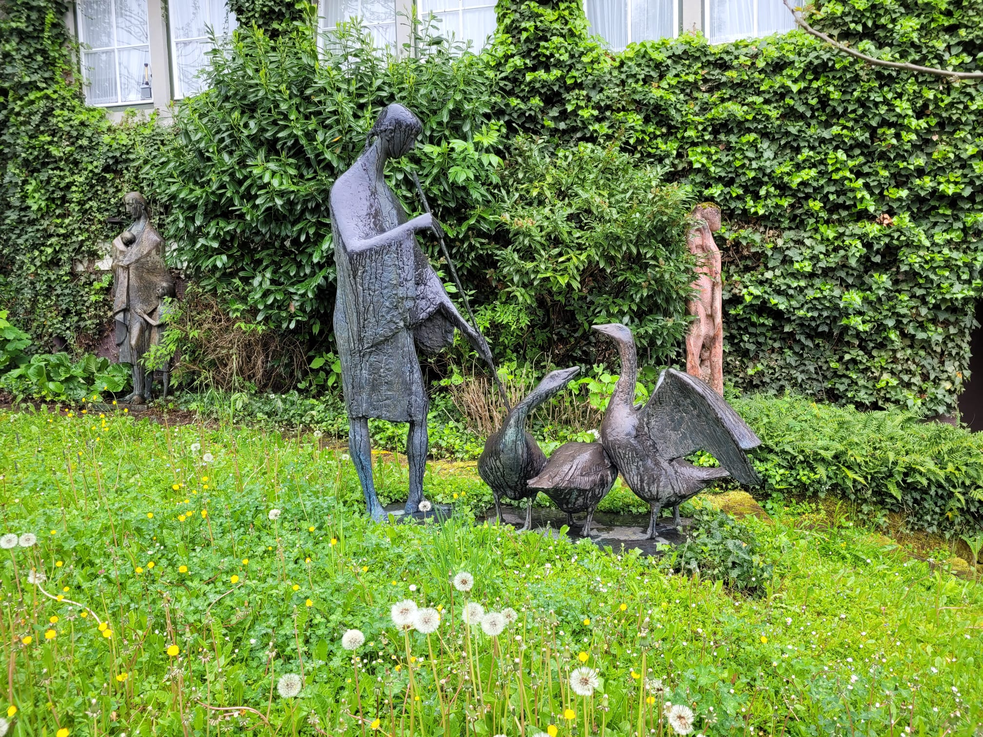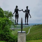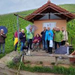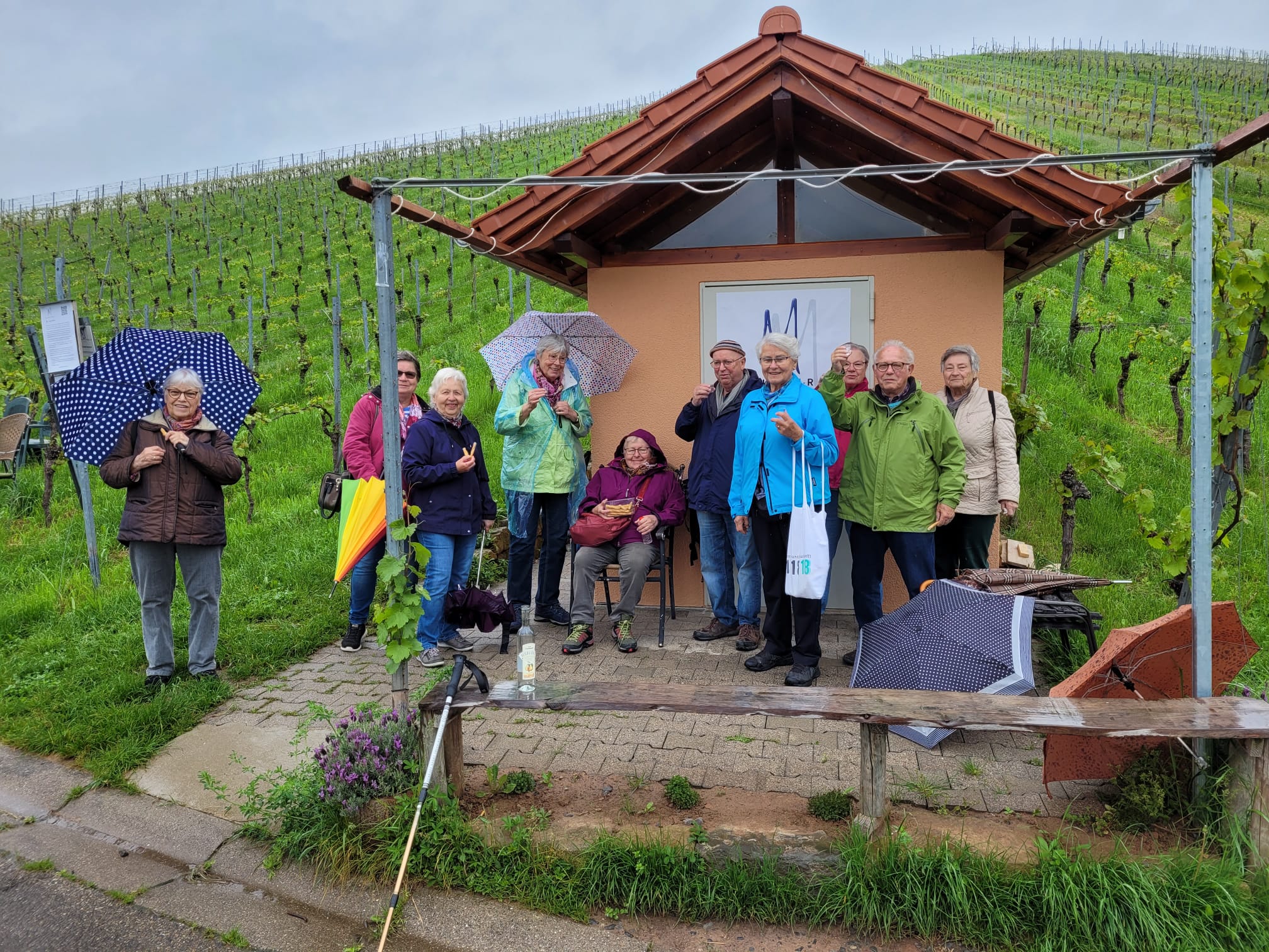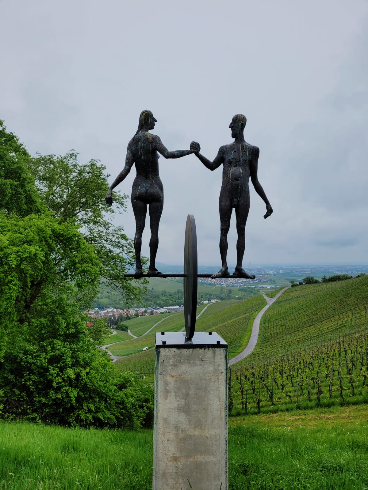 11 wetterfeste Wanderer machten sich auf und wanderten  am Donnerstag, 11. Mai in Strümpfelbach auf dem Skulpturenpfad. 48 Skulpturen aus Bronze und Stein der Künstlerfamilie Nuss erwarteten uns auf einem rund 3 km langen Rundweg durch die Weinberge – fantastische Ausblicke ins Remstal und darüber hinaus gab es dazu, triotz ständigem Nieselregen. Um ca. 12 Uhr kehren wir dann zum Mittagessen ins Restaurant La Rondine bei der Gemeindehalle ein, wo sich noch weitere Mitglieder zu uns gesellten, die nicht mitwandern konnten. Ein Dankeschön an die Wanderführer Marlies und Hansjürgen für die Organisation.