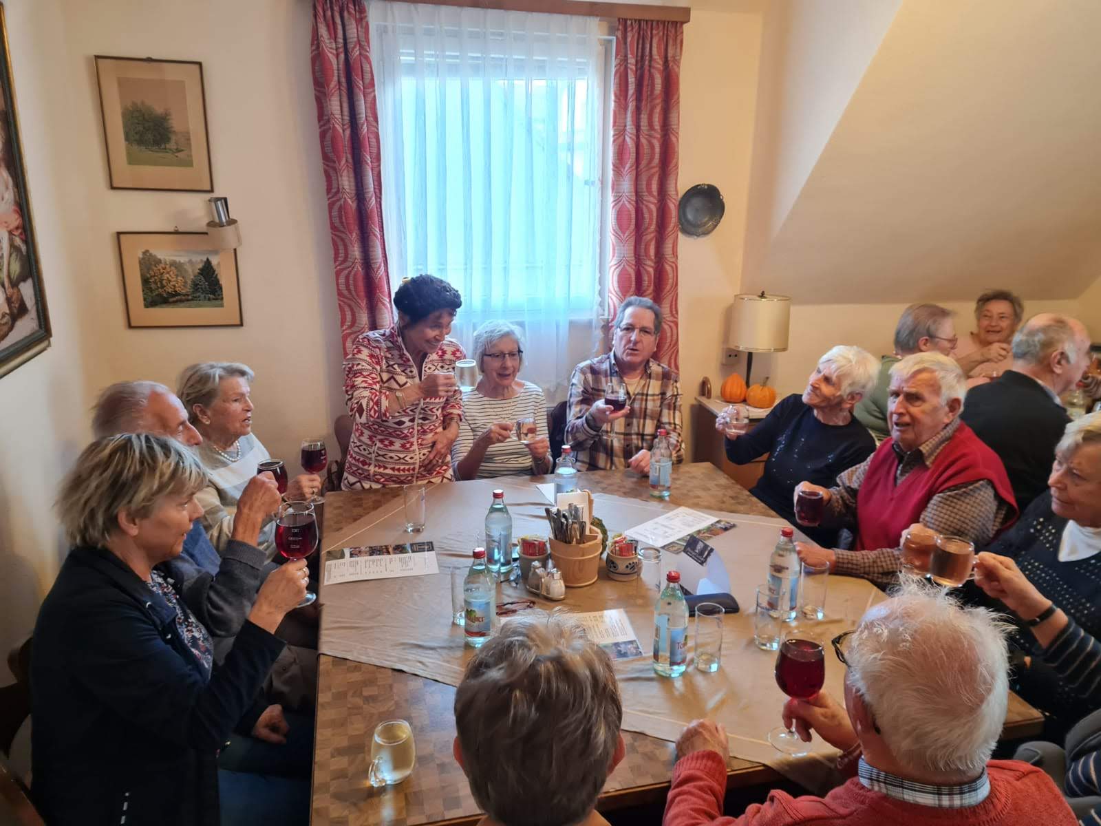 Nach einer gemütlichen Wanderung von 3,5 km vom Bahnhof Schwaikheim nach Winnenden kehrten wir 16 Wanderfreunde in der Besenwirtschaft Luckert ein, wo wir unsere 8 Nichtwanderer trafen. Bei gutem Besenessen, Wein und Gesang hatten wir ein paar schöne, unterhaltsame Stunden, bevor es gegen 16 Uhr mit dem Zug zurück nach Neustadt ging.