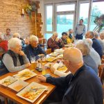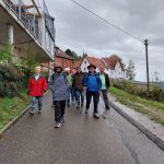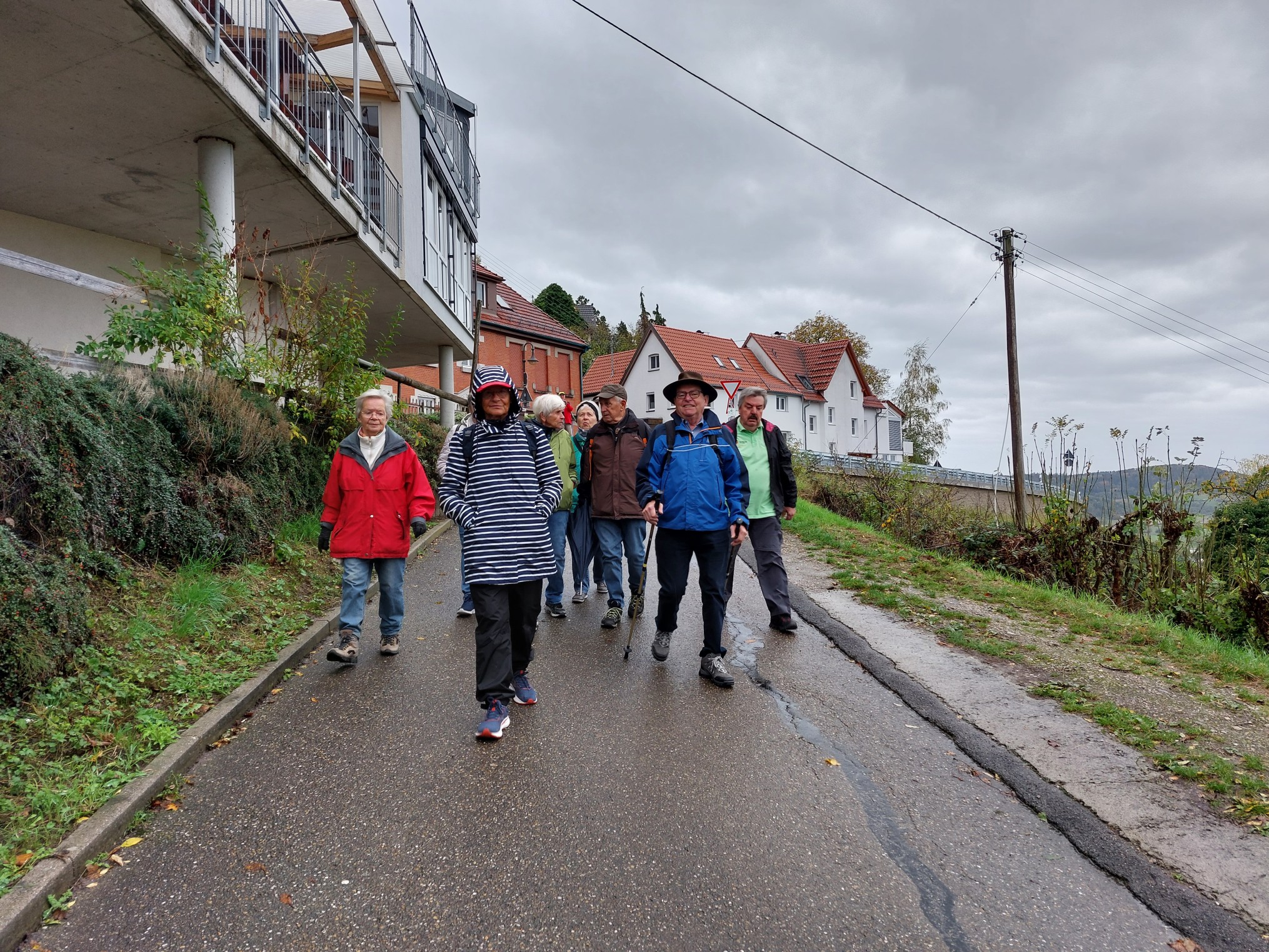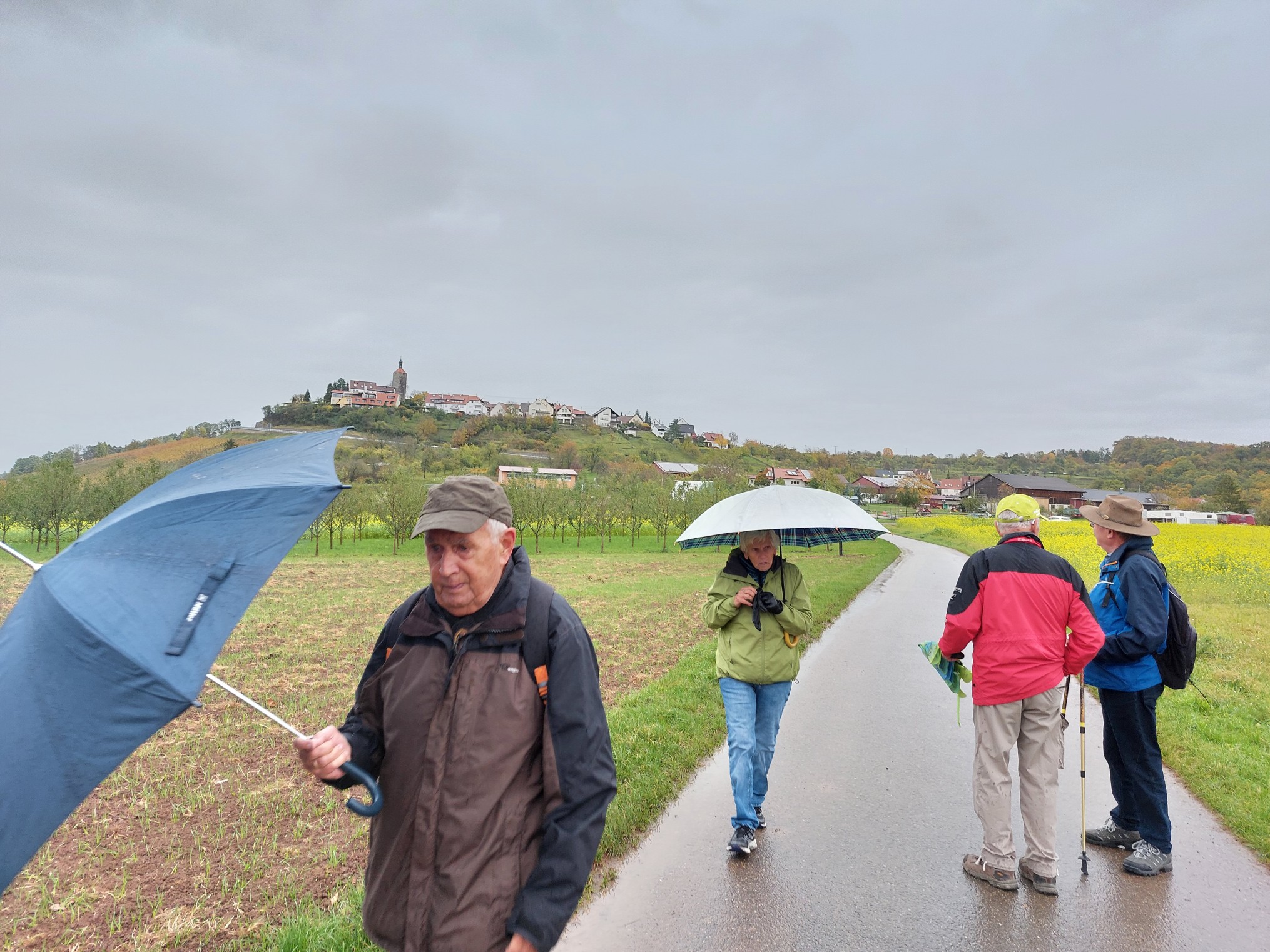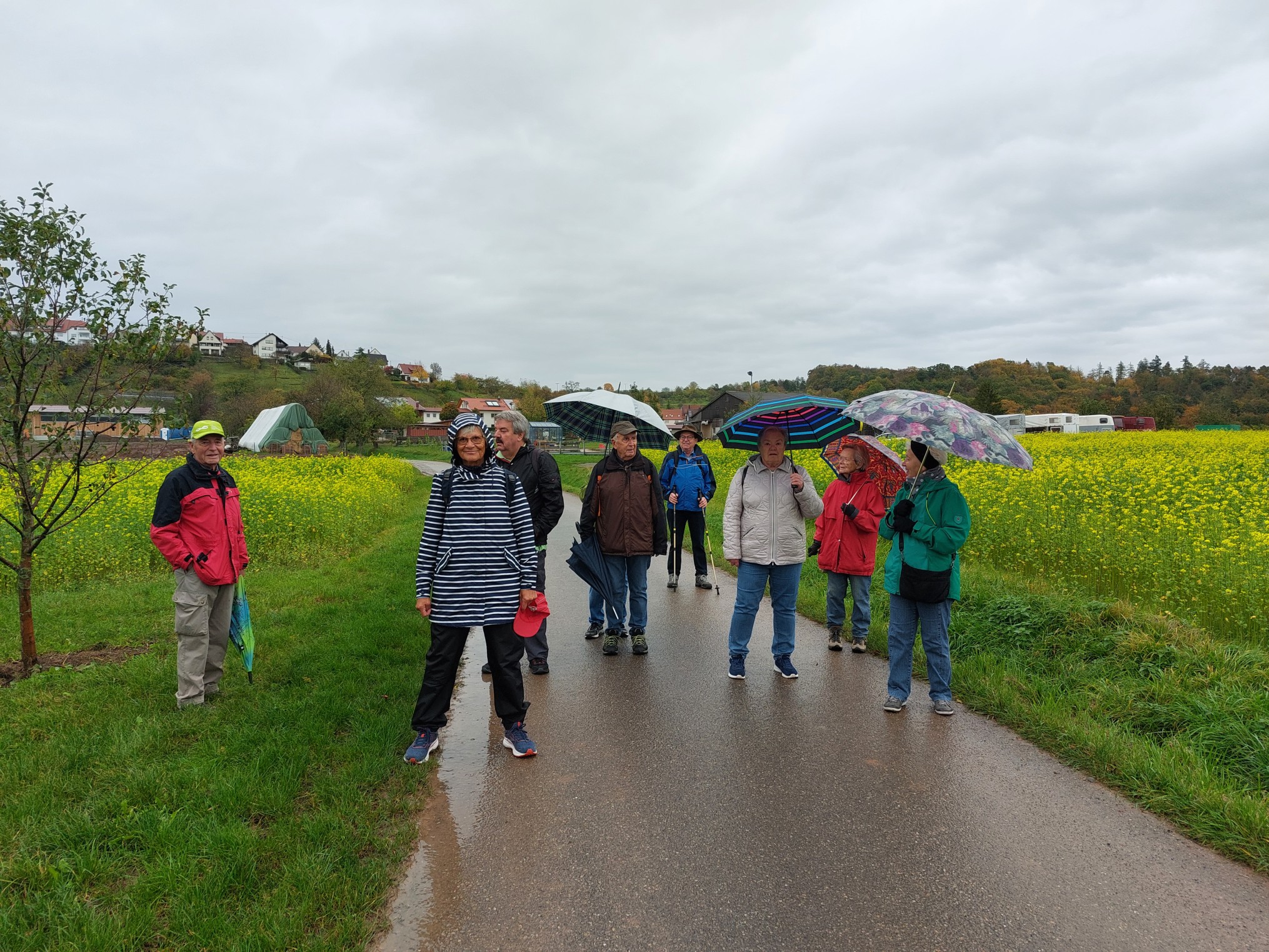 Zehn unerschrockene Wanderfreunde trafen sich am Vormittag bei schmuddeligem Regenwetter zur Fahrt nach Bürg. Von dort ging die Wanderung durch Streuobstwiesen mit herrlicher Aussicht ca. 4 km hinab nach Birkmannsweiler. Pünktlich zum Mittagessen trafen wir in der VFR Gaststätte Talaue auf zehn weitere Albvereinsfreunde, die allerdings nicht mitwandern konnten. Das Essen war sehr gut, der Service ebenfalls, so dass wir gegen 14.15 Uhr zufrieden die Rückfahrt mit Bus und Zug und teilweise PKW nach Neustadt antraten. Danke an unseren Wanderführer Albert fürs Organisieren.