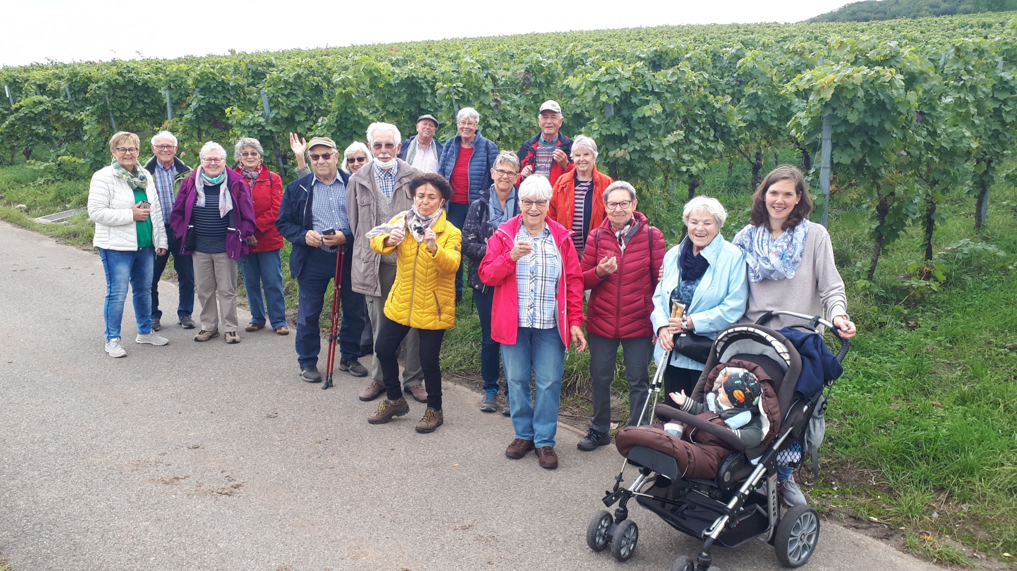 Um 14 Uhr fuhren 18 Wanderfreunde mit der S-Bahn nach Fellbach und weiter mit dem Bus ans Ortsende, wo wir unsere gemütliche Wanderung bei bestem Wanderwetter starteten. Es ging entlang der Weinberge, wo man noch die Winzer bei der letzten Traubenernte in diesem Jahr beobachten konnte. Unterwegs gab es eine kleine Rast und Stärkung, bevor wir dann um 16 Uhr im Römerbesen in Rommelshausen unser Ziel erreichten. Gemütlich saßen wir unter Beachtung der Coronabedingungen so gut es ging beisammen. Gegen 18 Uhr gingen wir noch 1,5 km bis zur Bushaltestelle Rommelshausen. Von dort erfoglte die Rückfahrt zum Bahnhof nach Waiblingen.