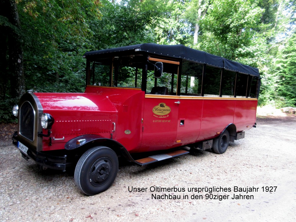 Da die Anfahrt sich schwierig gestaltete, wir schon älteren Semesters sind, kein großer Bus bis oben zum dortigen Parkplatz fahren konnte,entschieden wir uns für einen kleinen Oldtimer Bus aus dem Jahre 1927.