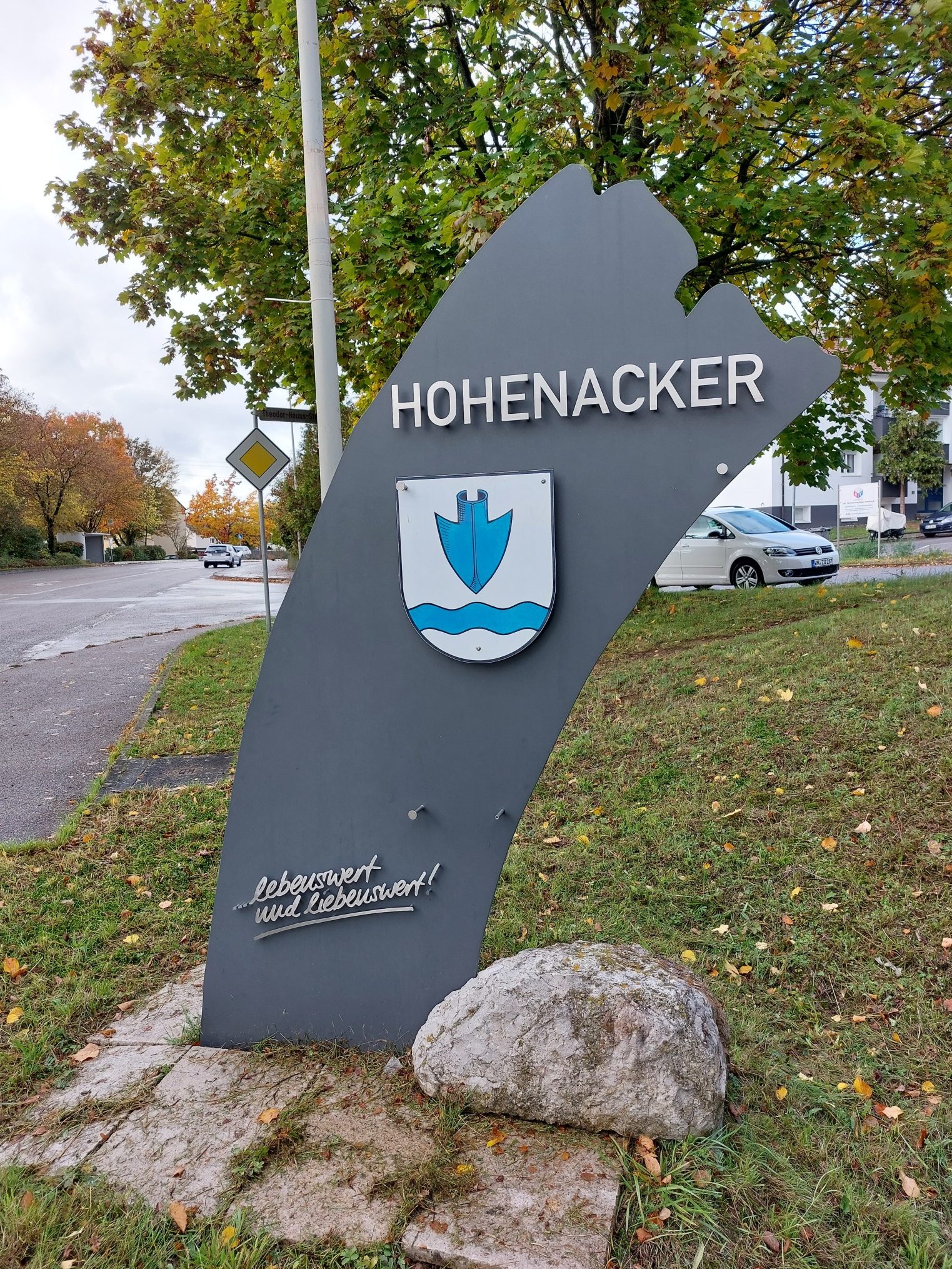 Hoch über den Schlingen der Rems, kurz vor deren Mündung in den Neckar, liegt die Ortschaft Hohenacker. Der Ort Hohenacker wird erstmals in der Schwäbischen Urbare von 1350, einer Steuerliste des Grafen Eberhard des Greiners, urkundlich erwähnt. Die hohe Lage des Dorfes nördlich von Waiblingen über dem engen Remstal war ausschlaggebend für seinen Namen. Das Wappen von Hohenacker zeigt in silber über einem erniedrigtem blauen Wellenbalken eine blaue Pflugschar.